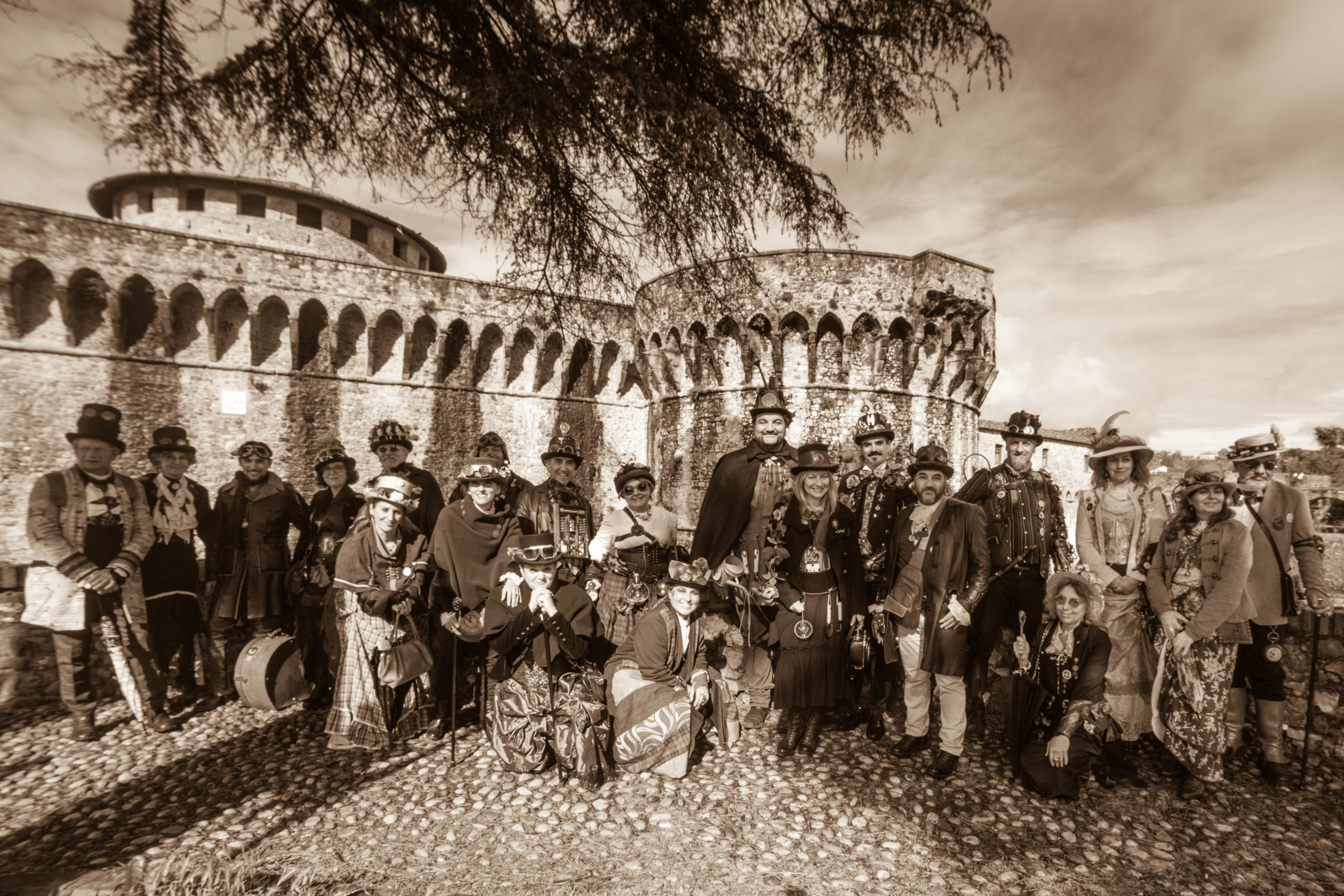 Certo che no! Ed infatti, il primo week end di febbraio, una moltitudine di Ladies e Gentlemen provenienti da tutta Italia, isole comprese, e da diversi paesi europei, e non solo, si è radunata in piazza San Marco, sfidando le distanze e la folla, pur di essere presenti alla sfilata che sabato 3 febbraio ha raggiunto l’Arsenale in un tripudio di cilindri, corsetti e trambusti. Una volta giunti alla meta ci siamo offerti con sommo compiacimento agli obiettivi dei fotografi; i nostri outfit e accessori, cosi inconsueti agli occhi del pubblico, comunque già avvezzo alle estrosità degli spettacolari costumi veneziani, non sono comunque passati inosservati, e tanta ammirazione hanno riscosso nei passanti e tra i curiosi, molti dei quali si sono profusi in complimenti per l’originalità e l’accuratezza dei dettagli.