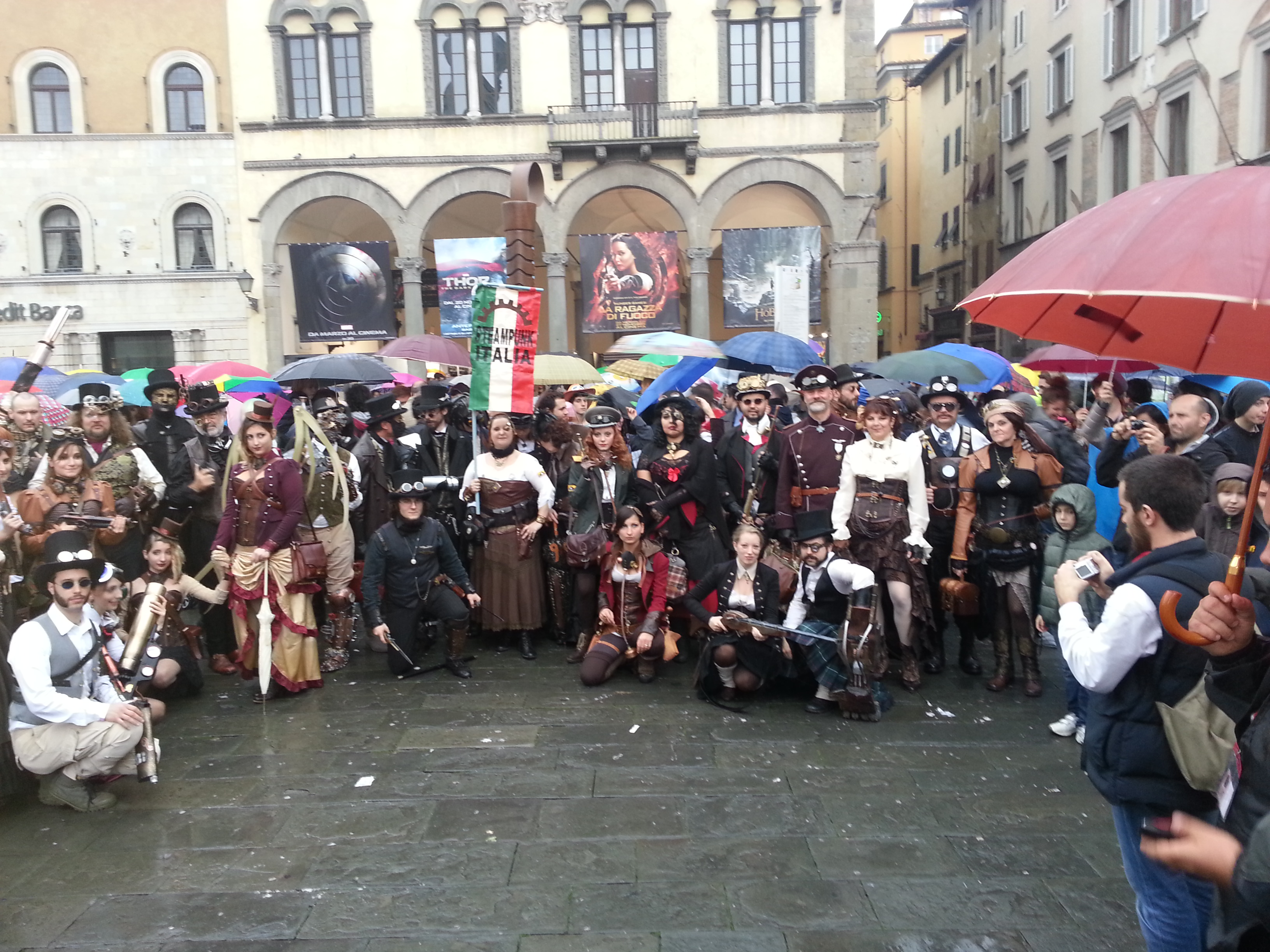 E’ primavera, svegliatevi bambineeee! Con questa frase inizia il primo verso della celebre canzone “Mattinata Fiorentina” che inneggia con gioia all’arrivo della bella stagione e dell’amore. Quasi con lo stesso vigore mattiniero un nutrito gruppo di steampunk ancora intorpiditi dal proprio stato letargico, è strisciato fuori dalla tana per varcare a grandi falcate le meravigliose mura di Lucca. Imbardati e tirati a lucido come nel migliore dei giorni di festa ci siamo radunati presso il famosissimo Palazzo Pfanner per un incredibile sessione fotografica. La struttura viene edificata a metà del 1600 dalla famiglia Moriconi in seguito acquistato dai Controni che lo ampliano e riqualificano il retrostante giardino. A metà del 1800 Felix Pfanner, di origini Bavaresi vi installa una delle prime birrerie sia per l’ Italia che per il Ducato di Lucca.